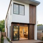 Энергоэффективный двухэтажный дом из газобетона спроектирован специально для сложных, вытянутых участков шириной от 12 метров. Проект «Вертикаль» ломает стереотип о том, что дом на узком наделе — это темный коридор. Благодаря грамотной ориентации и масштабному остеклению торцевых фасадов, внутреннее пространство наполнено светом, а строгая геометрия внешнего облика с плоской кровлей и комбинацией штукатурки с деревом выглядит ультрасовременно и дорого.